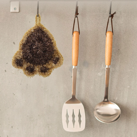 Tricotées en fil de polyester, elles peuvent être utilisées longtemps sans s’abîmer ni s'effriter et elles ne rayent pas les surfaces sensibles telles que les poêles ou les plaques de cuisson.