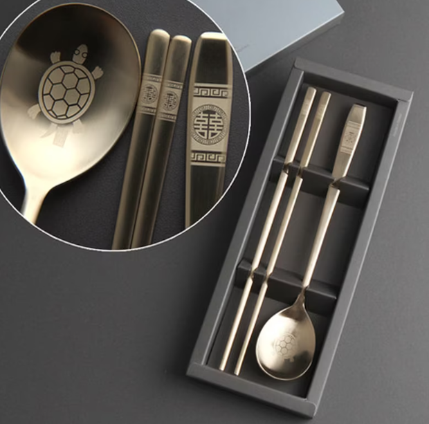 Idéal pour offrir, ce coffret de couverts coréen comprend une paire de baguettes et une cuillère en inox mat avec un revêtement renforcé en Titanium.