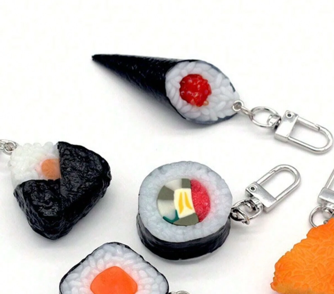 Le porte-clés Temaki 3D fabriqué à partir de résine de haute qualité, offre un design réaliste et kawaii. Il est parfait pour la décoration de sac ou comme cadeau créatif.