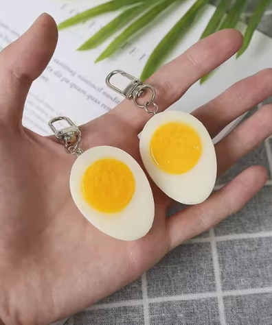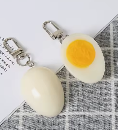 Le porte-clés Demi Oeuf 3D fabriqué à partir de résine de haute qualité, offre un design réaliste et kawaii. Il est parfait pour la décoration de sac ou comme cadeau créatif.